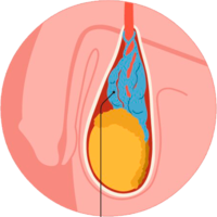 A varicocele is an enlargement of the veins within the loose bag of skin that holds the testicles (scrotum). Blood pools in the veins rather than circulating efficiently out of the scrotum.